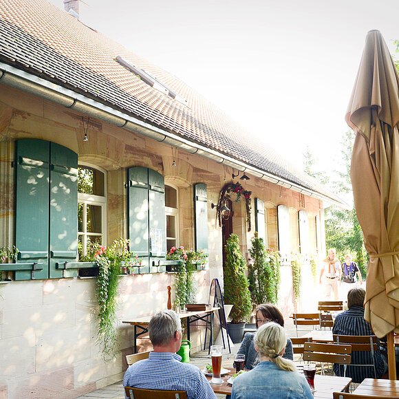 - in den Sommermonaten lädt Sie unser schöner Biergarten, im Schatten der Kastanienbäume, ein