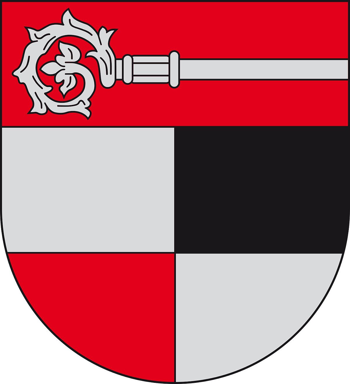 Unter rotem Schildhaupt, darin ein waagrechter silberner Bischofsstab, geviert