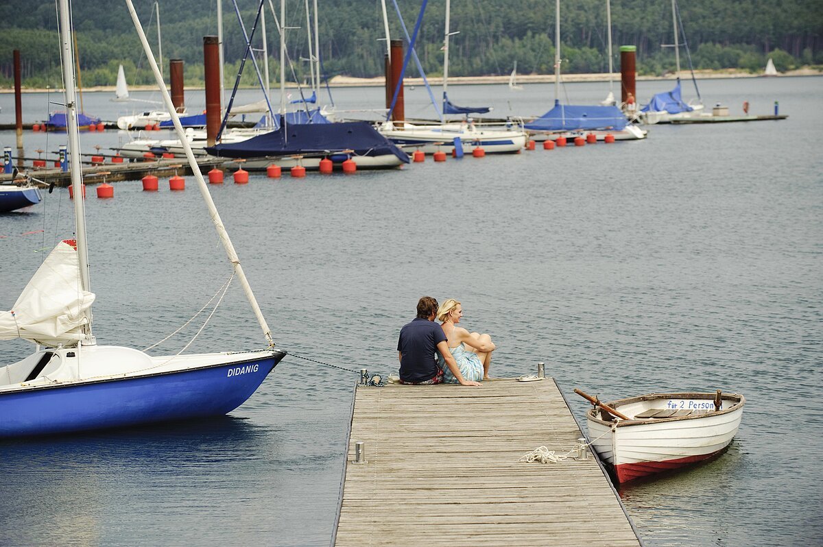 - Größter Binnensegelhafen Deutschlands mit 600 Wasser-und 150 Landliegeplätze, Doppelsliprampe, Bootskräne bis 5t und Segelzentrum mit Clubheimen