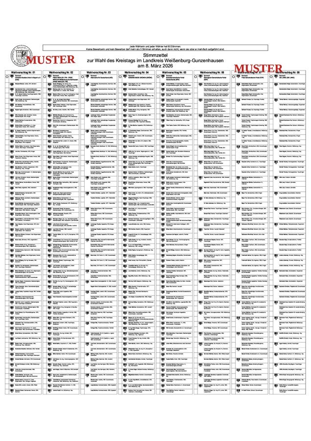 Eine gegebenenfalls stattfindende Stichwahl für den Bürgermeister oder die Bürgermeisterin und den Landrat bzw. die Landrätin würde am Sonntag, 22. März 2026 durchgeführt werden. Eine Stichwahl wird nur durchgeführt, wenn bei einem vorhergehenden Wahlgang die für eine Entscheidung notwendige Mehrheit nicht erreicht wurde.