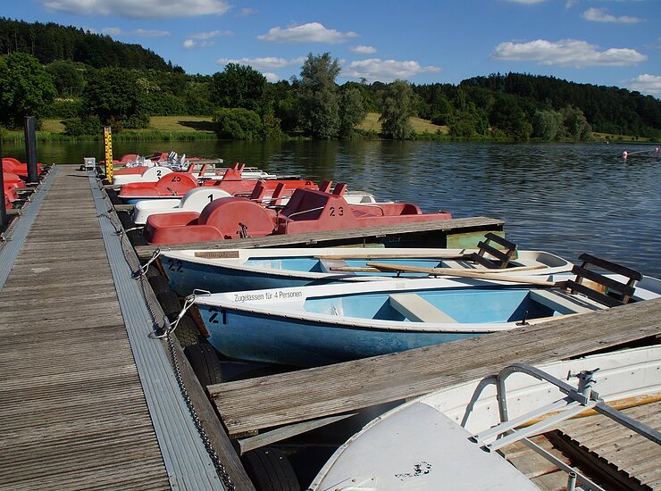 Neben baden, segeln und surfen bietet der Brombachsee noch weitere Möglichkeiten am und auf dem Wasser aktiv zu werden – zum Beispiel bei einer Bootsfahrt im Kanu, Ruderboot oder mit dem Tretboot.